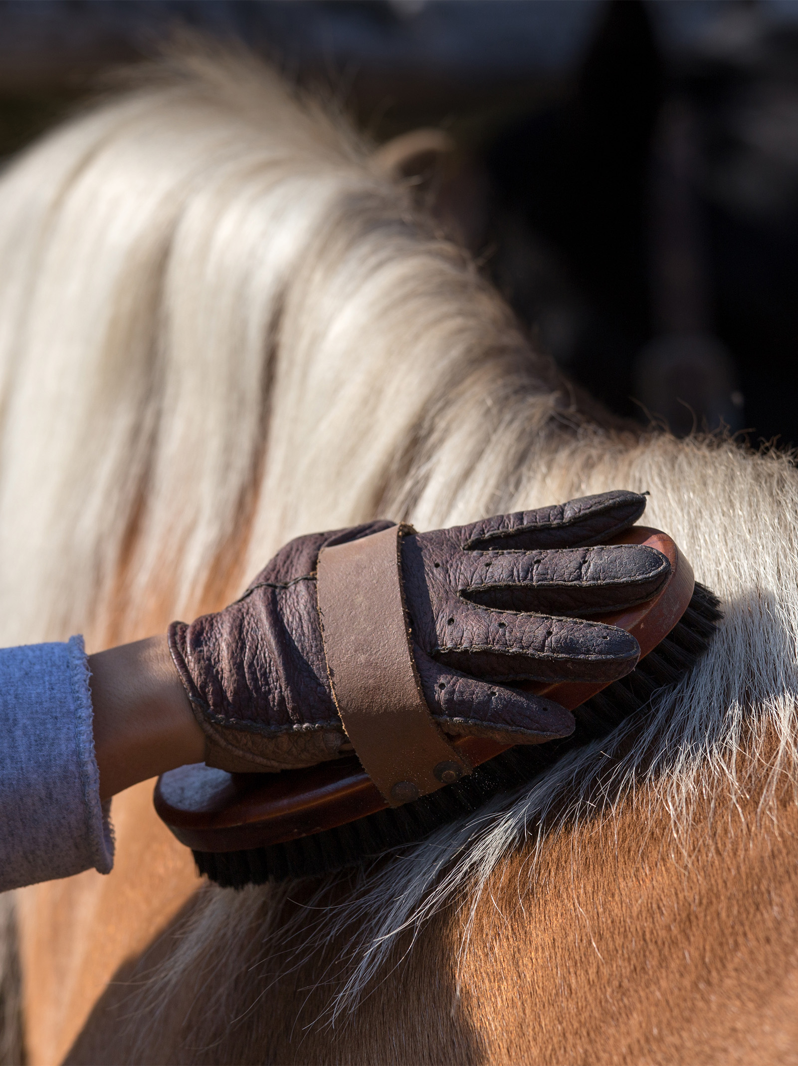 馬やポニーの手入れは、その健康状態を保つために重要です。定期的にブラッシングや蹄の裏を掃除してあげてください。特に毛が抜け替わる時期には、体を壁や手すりなどにこすりつけてかゆがったりするので、細目にブラッシングをして毛の手入れが必要です。